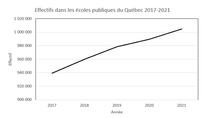 Figure 1 : Effectif total des écoles publiques québécoises, 2017-2021.