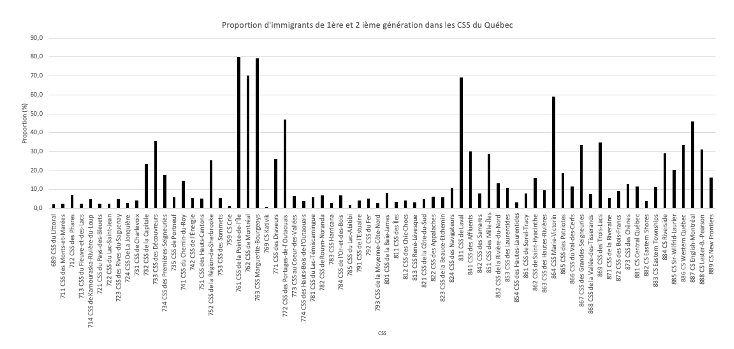 Figure 4 : Proportion d’immigrants de 1ère et 2ième génération dans les CSS (2021).